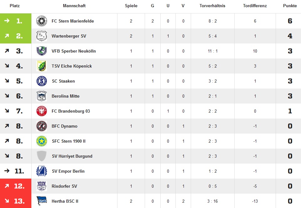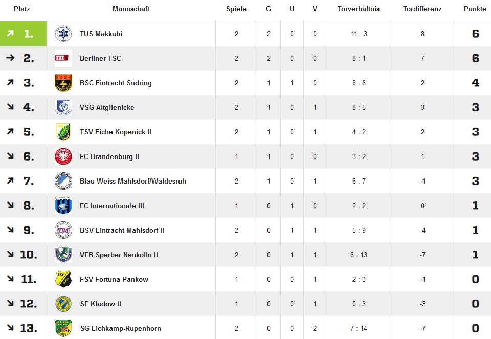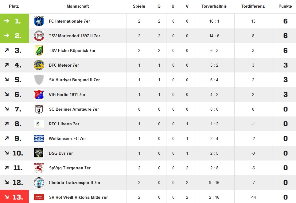 Der Berliner Fußball-Verband, neue Saison 2020/2021. ![]() Die 7er Ü40er: ![]() 02. Spieltag: Sa. 06.09.2020; um 11:00 Uhr: TSV Eiche Köpenick vs. SpVgg Tiergarten 4:2 Nächstes Spiel (03. Spieltag): Mi. 28.10.2020; um ?:00 Uhr: SV Rot-Weiß Viktoria Mitte vs. TSV Eiche Köpenick Tabelle: |